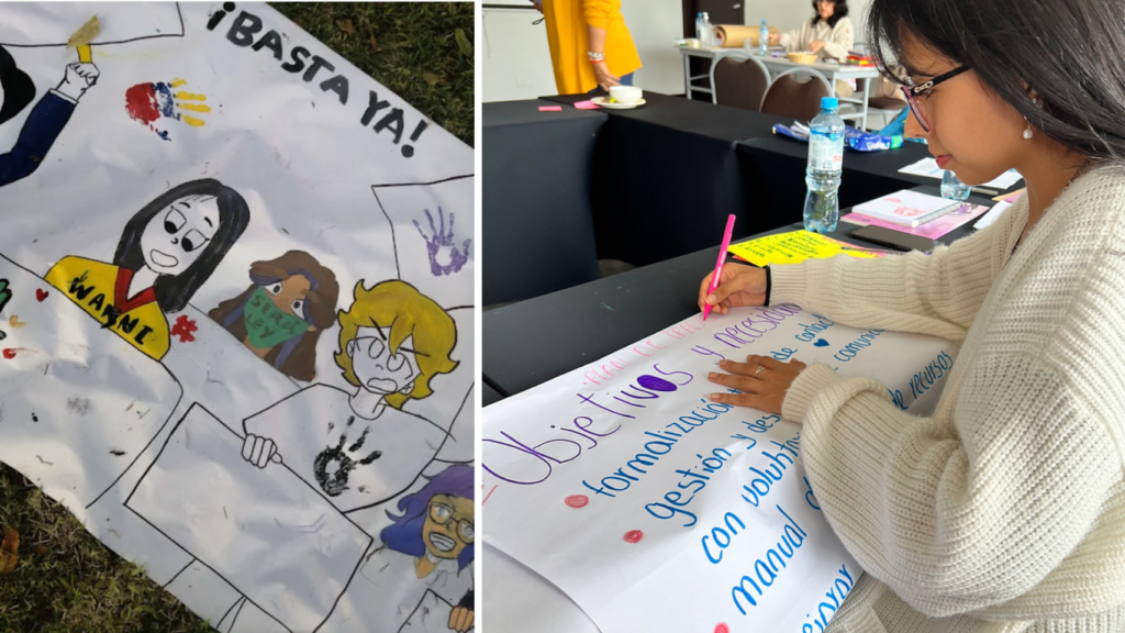 Left: Peruvian and Venezuelan youth activists shared anti-racist activism experiences through arts. | Right: Sara Cutipa at Global Fund for Women's Movement Partners Convening in Peru.