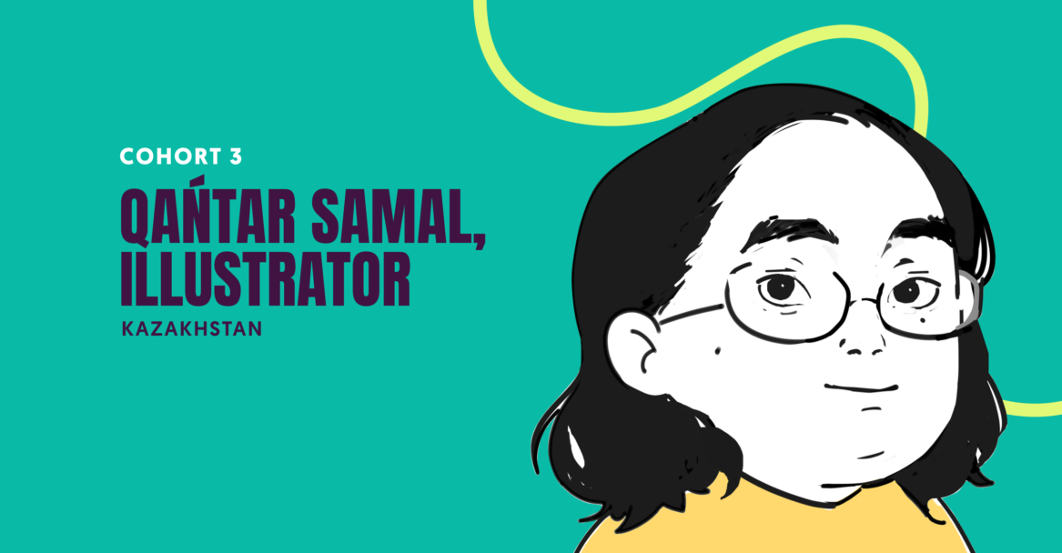 Qańtar Samal (she/her) is a Kazakh digital artist from Aktobe. In her work, she shares her vision of Kazakh/Central Asian culture and its connection to the local queer community. Explore Qańtar’s Instagram to learn more about her work, and read a brief interview with Qańtar below.